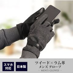 ■本革 & ウール 手袋 日本製 スマホ 対応 ラム革