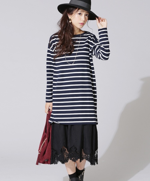 ナノユニバース・ボーダーカットワンピースXロングキャミsetワンピース